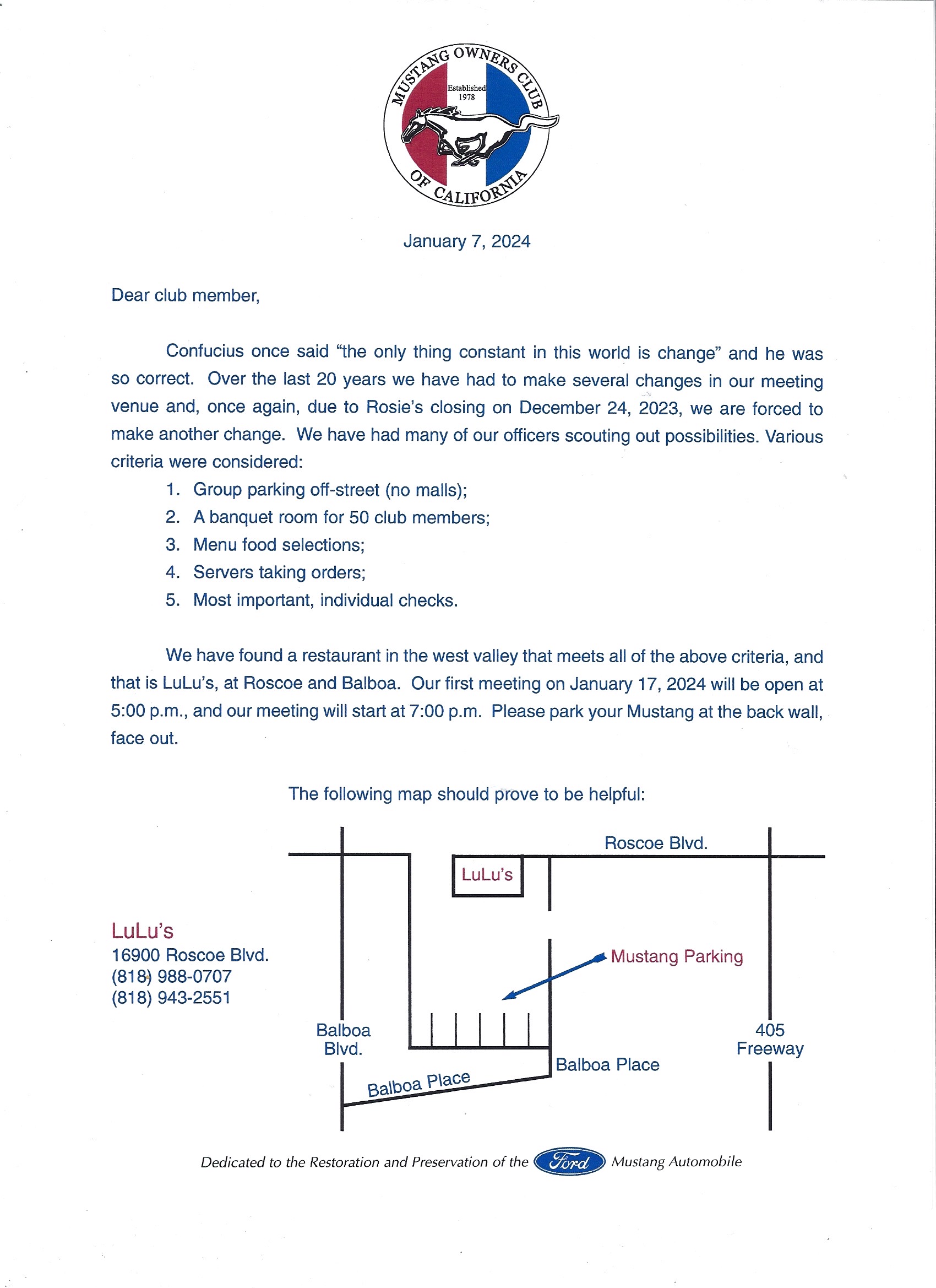 Starting Janyary 17th 2024 Lulu's Restaurant, 16900 Roscoe Blvd. Van Nuys, CA 91406